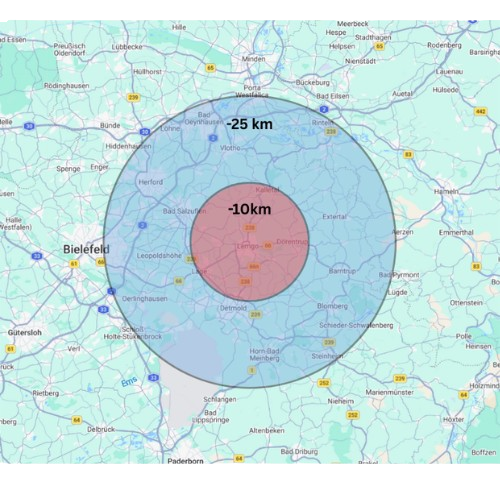 Mein Einzugsgebiet umfasst Lemgo, den gesamten Kreis Lippe sowie die umliegenden Regionen Bielefeld und Herford.
